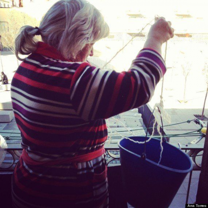 Su idea de utilizar el cubo para bajar las raciones de comida no es por pereza. A Candela le duelen las articulaciones y un tribunal médico certificó un grado de invalidez que le impide trabajar. Hace unos años limpiaba las oficinas de una compañía telefónica. "Bajo a la calle lo justo; me encuentro muy cansada".