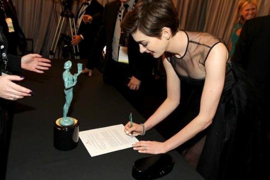 De los vestidos traicioneros no se libran ni las celebrities, por mucho que los suyos sean de las mejores marcas. Una nueva prueba la deja en la gala de los premios del Sindicato de Actores 2013 Jennifer Lawrece: vestido roto justo en el momento en que le tocaba recoger su galardón .