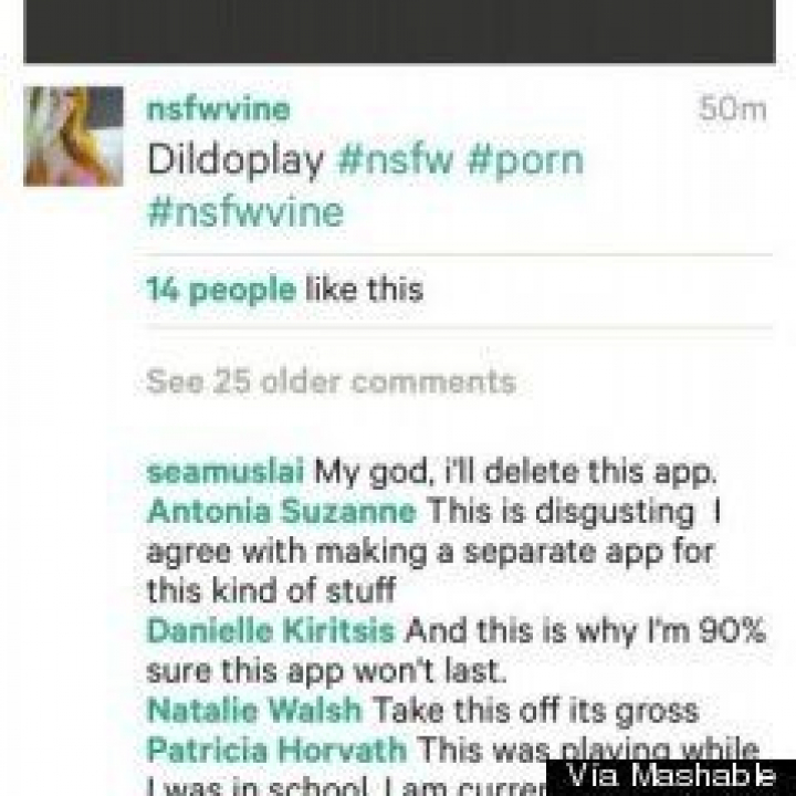 El contenido sexual de algunos mensajes ha marcado estos primeros días de Vine. The Verge, Mashable o TechCrunch pronto se hicieron eco de la presencia de este tipo de vídeos, accesibles en un primer momento mediante hashtag como #porn, #dildo o #sex. Buscando, por ejemplo, por sex algunos vídeos aparecen marcados con un aviso sobre contenido sensible y un fotograma en negro (el vídeo de activa al tocarlo), pero un montón aparecen sin mención de ningún tipo: masturbaciones varias o gente con ganas de enseñar su culo al mundo en seis segundos, entre otras.