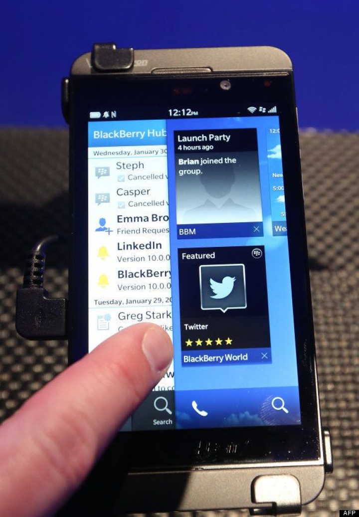 El primero busca desprenderse de la imagen tradicional de la BlackBerry al dejar atrás tanto el teclado físico como el botón de inicio, dando paso a una pantalla táctil de 4,2 pulgadas (ligeramente superior a la del iPhone 5, de 4 pulgadas) que se asemeja más a los 'smartphones' que inundan hoy el mercado.