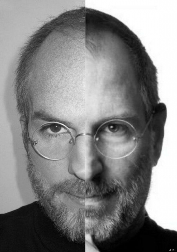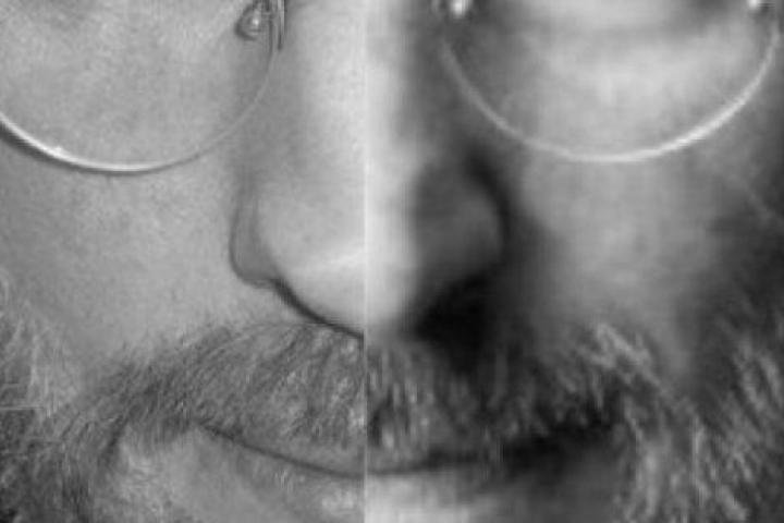 La foto de la derecha, del Steve Jobs real, es el retrato utilizado para la portada de la biografía que escribió Walter Isaacson, todo un bestseller.
