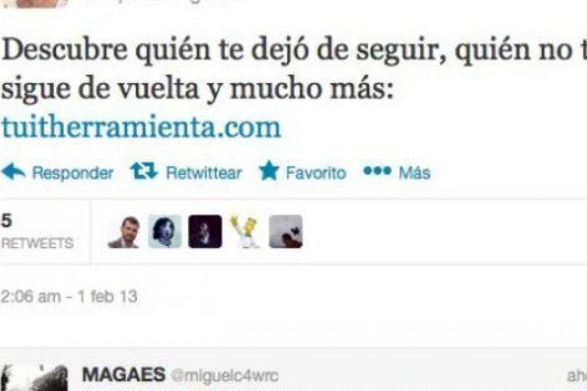 Aguirre y su equipo parecen preocupados por quién les haya podido hacer un 'unfollow' tras el escándalo. Y el mensaje es una publicación automática de una herramienta que te dice quién te ha dejado de seguir en la red social recientemente.