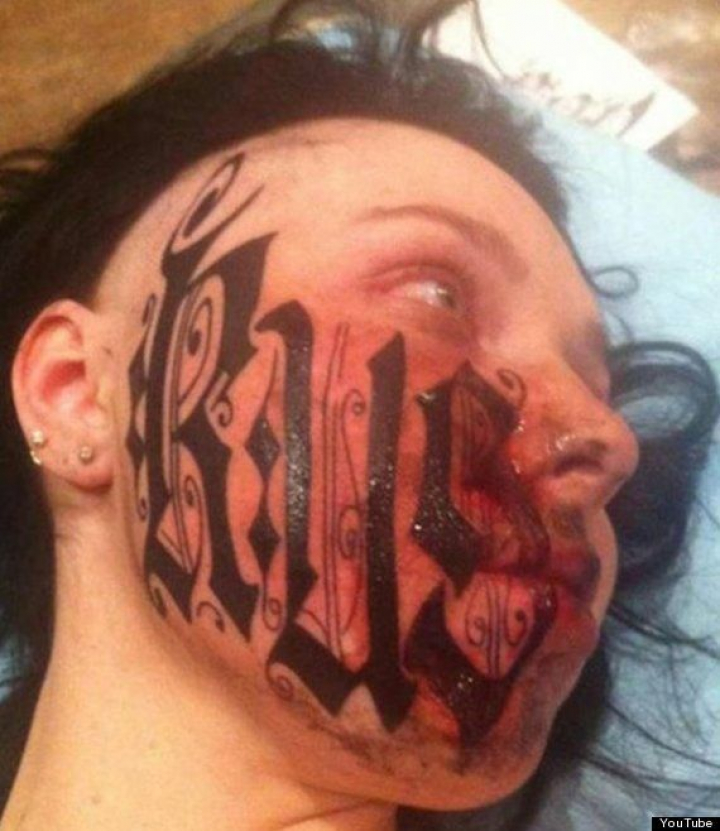 Tatuajes raros: tras 24 horas de flechazo se tatúa su nombre en la cara (FOTOS)