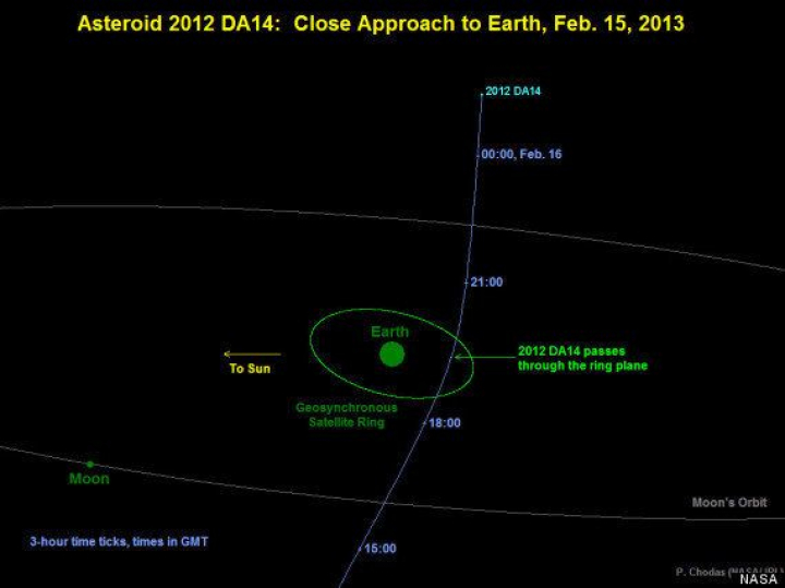 La NASA ha facilitado a los propietarios de los satélites la trayectoria del DA14 para que calculasen el riesgo y nadie "ha dado la voz de alarma", precisó Yeomans. Se espera que no vuelva a pasar cerca de la Tierra hasta dentro de al menos 30 años.