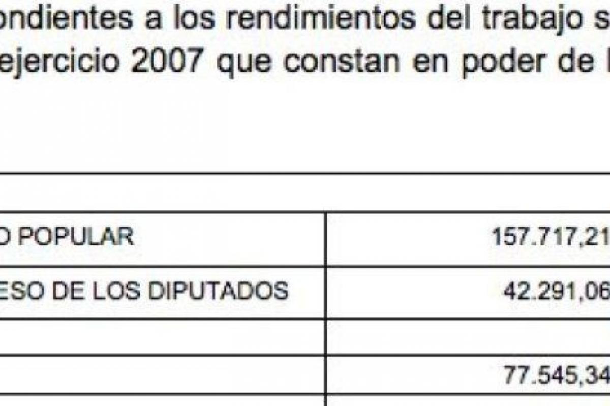 En 2005, la cantidad bruta que Rajoy percibió del partido ascendió a 143.912,76 euros; cifra que se elevó a 146.459,86 euros en 2006. Un año más tarde, en 2007, Rajoy percibió del PP 157.717,21 euros, cifra que subió considerablemente en 2008, hasta 185.794 euros brutos.