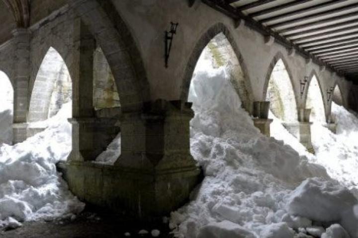El temporal ha dejado ya algunas imágenes espectaculares. Por ejemplo, la Colegiata de Roncesvalles (Navarra), tradicional punto de partida del Camino de Santiago en España, vive estos días una histórica acumulación de nieve, de grosores de más de metro y medio, que ha provocado una espectacular avalancha que ha entrado a través de los arcos del claustro, lo que ha hecho que numerosos peregrinos y visitantes se encuentren con una inusual imagen del templo.
