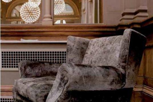 Sillón tapizado con telas que fueron arrastradas por las calles donde sucedieron los disturbios en agosto de 2011 en Croydon, Londres. Galería mor-charpentier