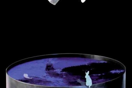 Sonido y proyección animada sobre agua en un barril de acero inoxidable. Galería Edward Tyler Nahem Fine Art