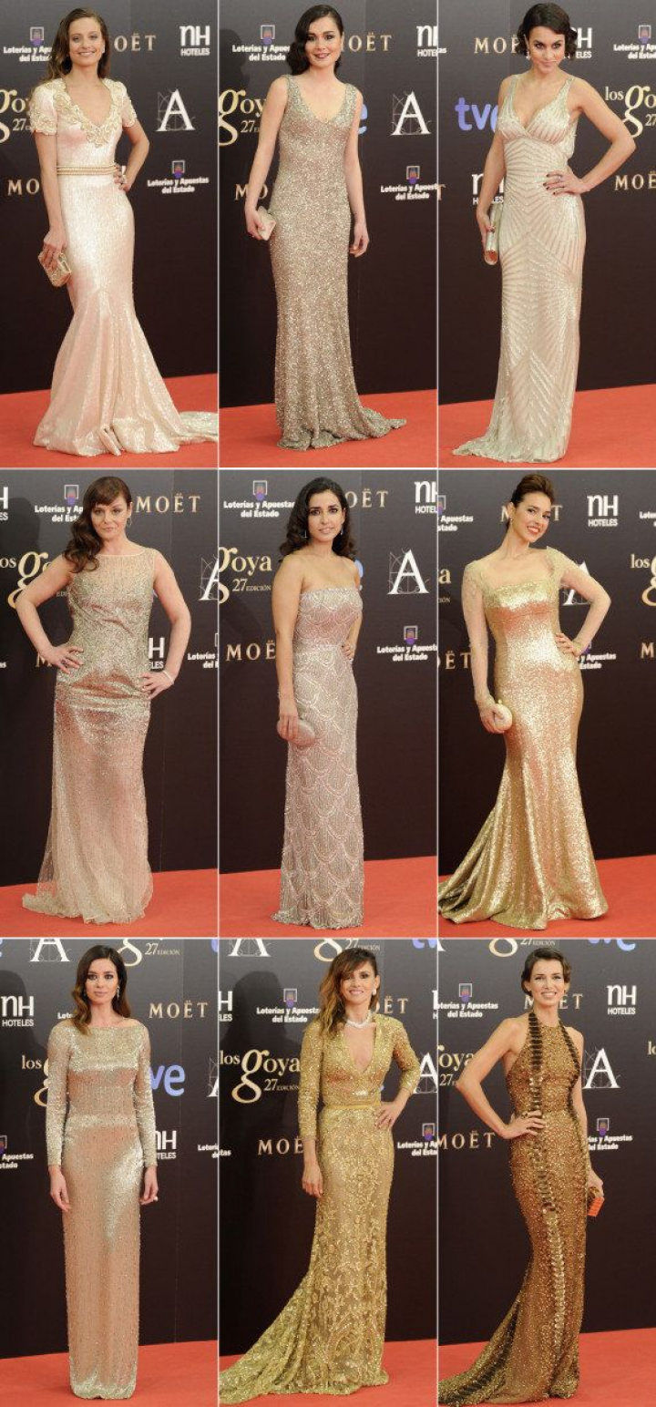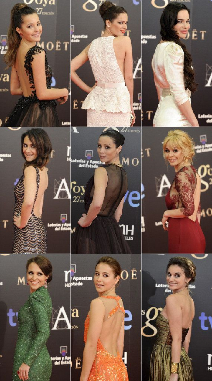 Aún así, hemos podido detectar tres grandes grupos en las chicas de los Goya 2013: las que han copiado a Angelina Jolie en los Oscar 2012 enseñando pierna; las que han copiado a Elsa Pataky haciendo su famoso 'pataki' mirando por encima del hombro enseñando espalda... y las que se han copiado entre ellas vistiéndose de burbujita freixenet.