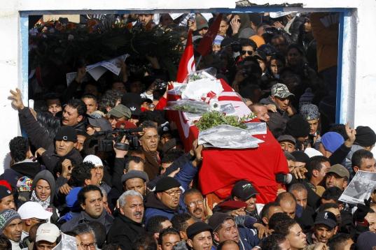 Miles de personas se han concentrado para celebrar el funeral del líder opositor Belaid