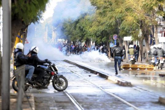 La Policía también han lanzado gases lacrimógenos