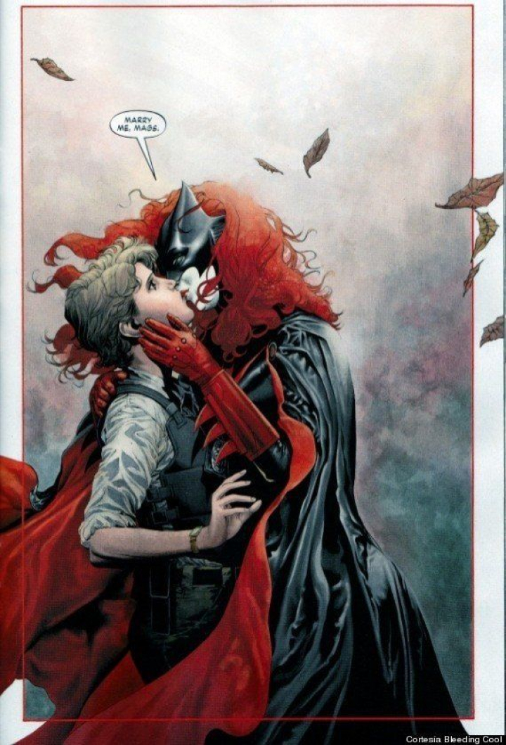 ComicBookResources.com también confirma la petición. "Cásate conmigo, Mags", le dice, al tiempo que le planta un beso a su novia, capitana de policía, tras revelarle su verdadera identidad como Batwoman.