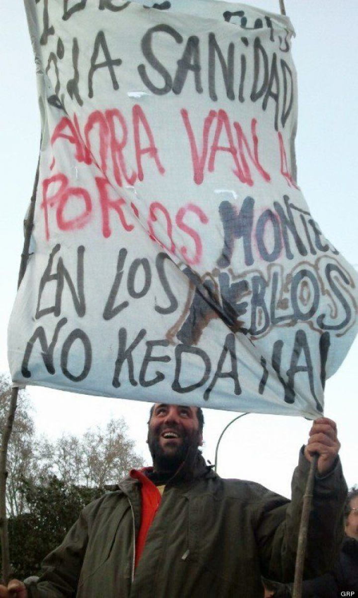 Quique, de 38 años, se puso de acuerdo con otros técnicos forestales de La Alcarria (él es de Pareja, en Guadalajara) para acudir juntos a Madrid. La mitad está en paro, según contaba. Les han despedido ocho meses, hasta que comience la temporada de incendios. A ellos les quema, mientras tanto “la corrupción y que recortan derechos a los trabajadores mientras mantienen los privilegios de los bancos”.