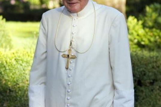 Vatican City, VATICAN CITY STATE: Pope Benedict XVI is helped by his private secretary Georg Gaenswein (R) and bishop James Harvey prior his weekly general audience in St. Peter's Square at the Vatican 23 November 2005. The Vatican relaced 22 N...