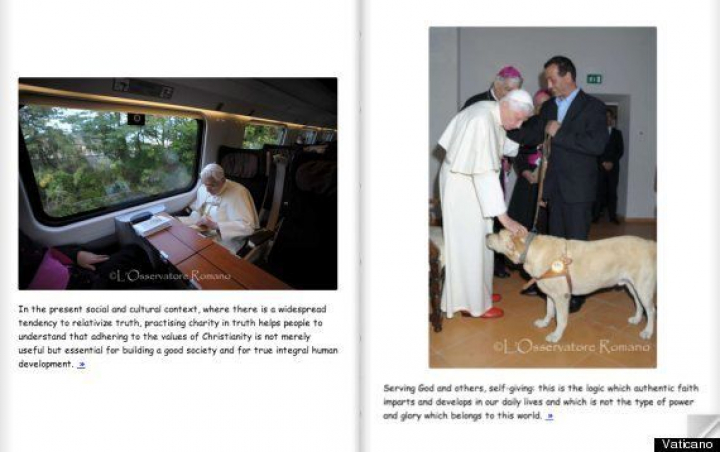 Como informa The Verge, el Vaticano ha realizado un álbum de 62 páginas, que ha sido publicado en su propia página web, que reúne una colección de fotos de Benedicto publicadas por L'Osservatore Romano,el periódico nacional de la Ciudad del Vaticano. En el álbum, Benedicto aparece realizando las más variadas actividades: saludando a los fieles, ayudando a Juan Pablo II, dando un paseo por el campo o escribiendo. Y, por supuesto, todo el texto que acompaña a las imágenes está escrito... en Comic Sans.