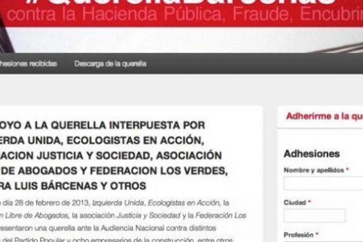 Izquierda Unida y otros cuatro colectivos ciudadanos presentaron el pasado 28 de febrero una una querella contra Luis Bárcenas y los supuestos donantes y perceptores de fondos del PP que quedaron registrados en los papeles del extesorero. Ahora, la formación ha abierto una web con la que invita a los ciudadanos a sumarse a esa querella. Sin embargo, la web no ha estado operativa durante buena parte de la mañana de este lunes debido a que se ha saturado, según ha asegurado en Twitter el diputado de IU Alberto Garzón.