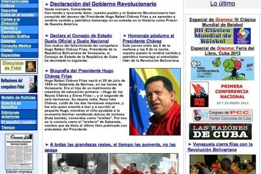 Las portadas de diarios impresos y online sobre la muerte de Chávez y sus obituarios en la prensa internacional, desde Cuba a Nueva York.