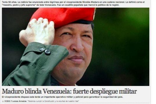 El diario argentino destaca que Venezuela está blindada tras la muerte de Chávez. "Mejoró la salud y la educación y elevó el nivel de vida de grandes sectores marginados. Eso le ganó el respeto popular y le permitió mantenerse en el poder...