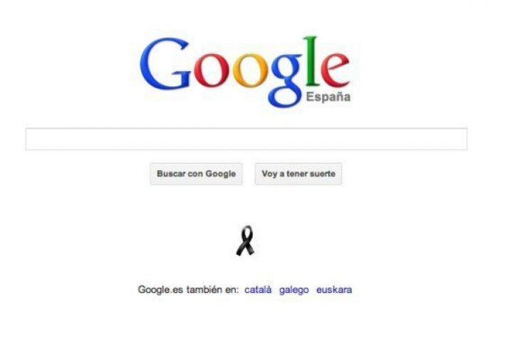 Google ha vuelto a colocar un lazo negro en la portada de su versión española. Se trata de un homenaje a las víctimas de los atentados del 11 de marzo de 2004 en Madrid, de los que hoy lunes se cumplen nueve años.
