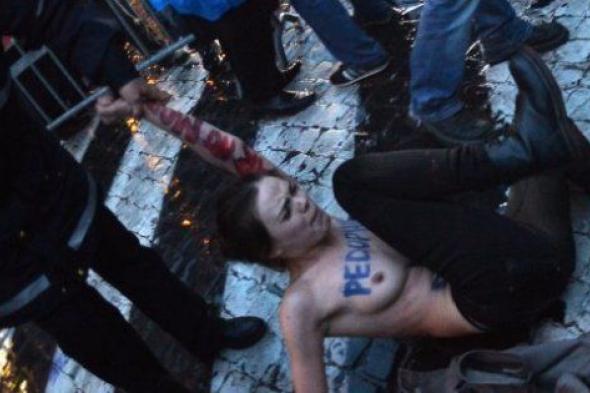 En topless y con el cuerpo pintado con lemas en favor de la homosexualidad y en contra de la pedofilia y del papa, han manifestado su oposición a la postura de la Iglesia sobre estos temas.