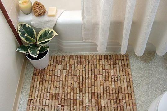 Alfombra de baño elaborada con tapones de corcho... ¡Perfecta para no dejar pasar el agua!