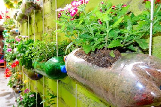 Utiliza las botellas de plástico como maceteros
