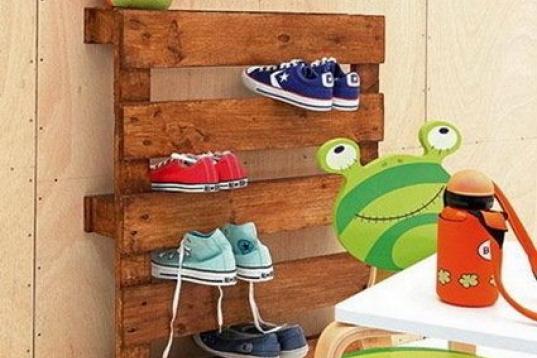 Inclina un palé, barnízalo y coloca tus zapatillas...