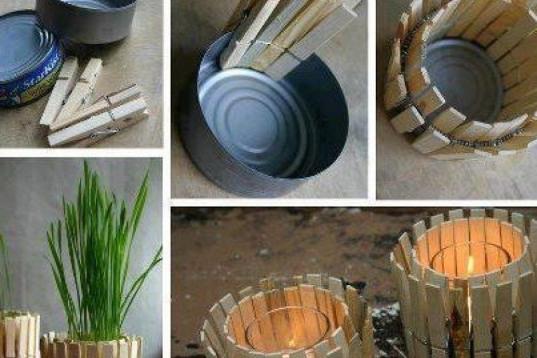 Una lata, pinzas de madera y elige entre un macetero o un porta velas