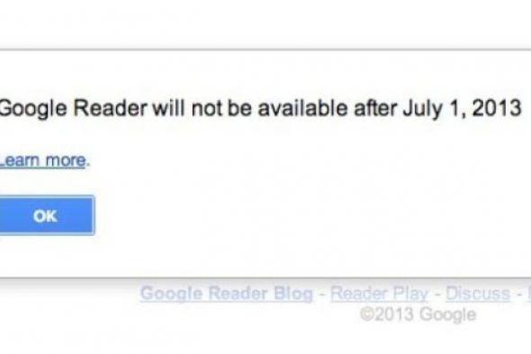 Google ha anunciado el cierre de su lector de noticias RSS en internet Google Reader. El día 1 de julio de 2013 desaparecerá, dejando huérfano a un grupo fiel de usuarios a los que no les ha hecho ninguna gracia el anuncio. Un escueto mensaje ("Google Reader no estará disponible a partir del 1 de julio de 2013") anuncia la noticia a quienes acceden a su Reader.