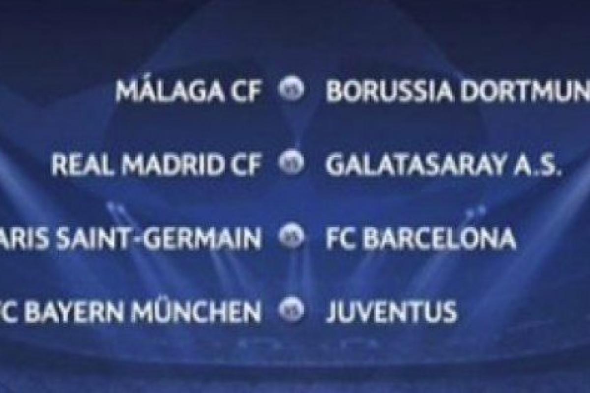 Real Madrid - Galatasaray, Barcelona - Paris Saint Germain y Málaga - Borussia de Dortmund. Esa es la suerte que ha deparado el sorteo de cuartos de final de la Champions League celebrado este viernes en Lyon. Juventus - Bayern de Múnich es el otro emparejamiento. El encargado de sacar las bolas ha sido el exjugador del Liverpool y del Real Madrid Steve McManaman.