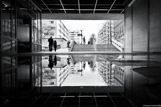 "Lo primero que hago cuando veo una superficie en la que se aprecia un reflejo, como un charco, una ventana o un tipo de suelo es observar si hay algo interesante en ese reflejo porque si no buscar los reflejos sería algo mecánico", explica vía email a The HuffPost. "Es como estar jugando con juguetes. Tienes varios elementos y los tienes que colocar en el mejor lugar posible para conseguir la mejor composición", añade.