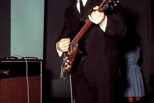 PA NEWS PHOTO 7/12/63 GEORGE HARRISON OF "THE BEATLES" DURING REHEARSALS IN LIVERPOOL. * 30/11/01 It has been announced that, George Harrison, the Beatles' quiet lead guitarist and spiritual explorer has died, a longtime family f...