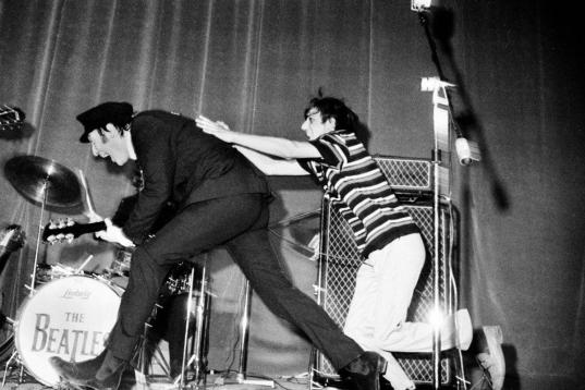 The Beatles in performance at a night spot, April 1963. (Photo by Hulton Archive/Getty Images)