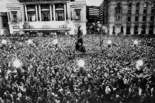 The scene when Liverpool paid tribute to one of its most famous sons, pop superstar John Lennon. Thousands gathered outside St George's City Hall for a concert to commemorate the former Beatle, who was shot dead in New York last week. More than ...