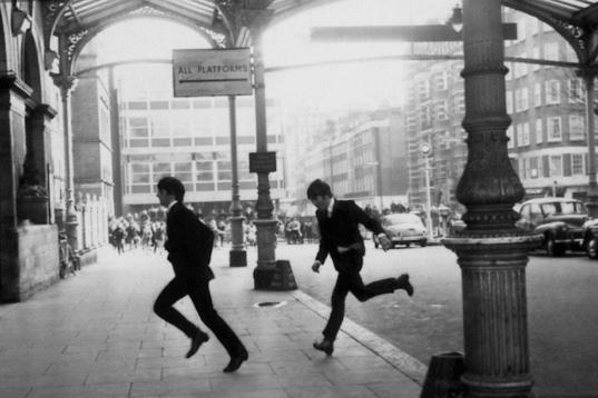 Ringo Starr (left) and John Lennon nip smartly into London's Marylebone Station, just in front of a horde of fans closing in on them rapidly.