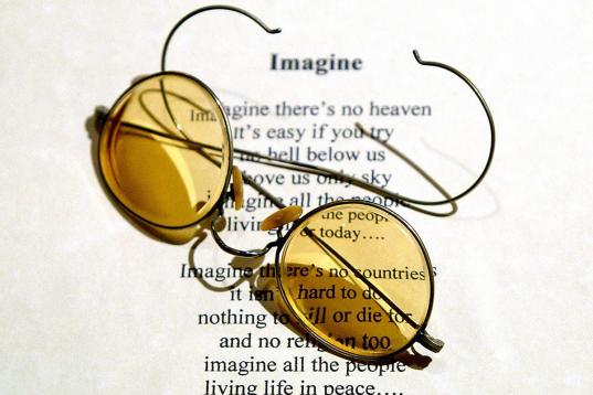 John Lennon's original orange-tinted spectacles on show at the Beatles Story Museum at The Albert Dock in Liverpool. The glasses, which he wore between 1970 and 1973 became his trademark image are valued at more than 1 million. He wore the spe...