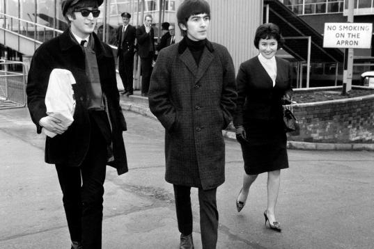 The Beatles arrive at London Airport: (l-r) Paul McCartney, John Lennon, Ringo Starr and George Harrison.