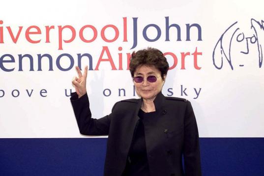 Yoko Ono, widow of singer John Lennon from the Beatles, visiting Liverpool Airport, which is to be named after her late husband when its new terminal opens to the public in Spring 2002. * The new logo for the airport includes the famous self-...