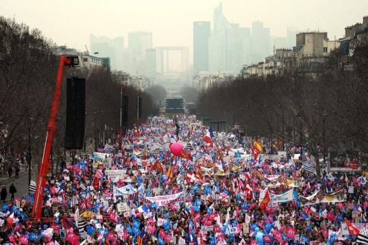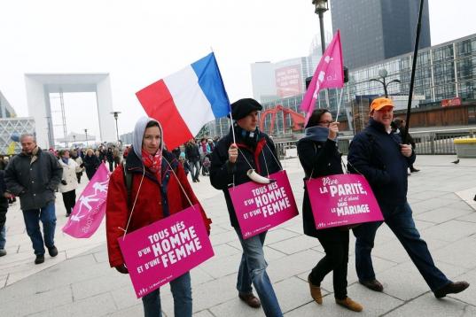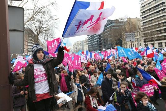 Se trata de la primera gran manifestación desde la que el pasado 13 de enero reunió en la capital francesa a un millón de personas, según los organizadores (340.000 según la policía). Esta nueva jornada de protesta, que contó con la participación de numerosos diputados conservadores, entre ellos el presidente de la derechista UMP, Jean-François Copé, se produce mes y medio después de que los diputados adoptaran la ley que legaliza las uniones de personas del mismo sexo.