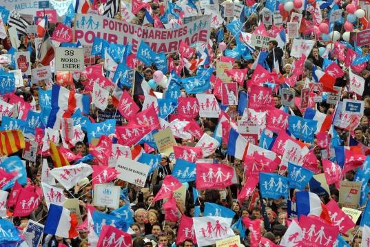 Decenas de miles de personas protestaron este domingo en París contra el matrimonio entre personas del mismo sexo en la tercera gran manifestación contra esta ley impulsada por el gobierno del presidente francés, François Hollande.