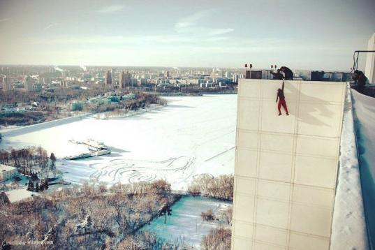 Como recogen nuestros compañeros de The Huffington Post, el joven ucraniano que aparece en estas imágenes se hace llamar Mustang Wanted y tiene la costumbre de hacerse fotografías en situaciones que desafían la gravedad. Según el Daily Mail, el hombre tiene 26 años, es de Kiev y era abogado antes de embarcarse en estas aventuras.
