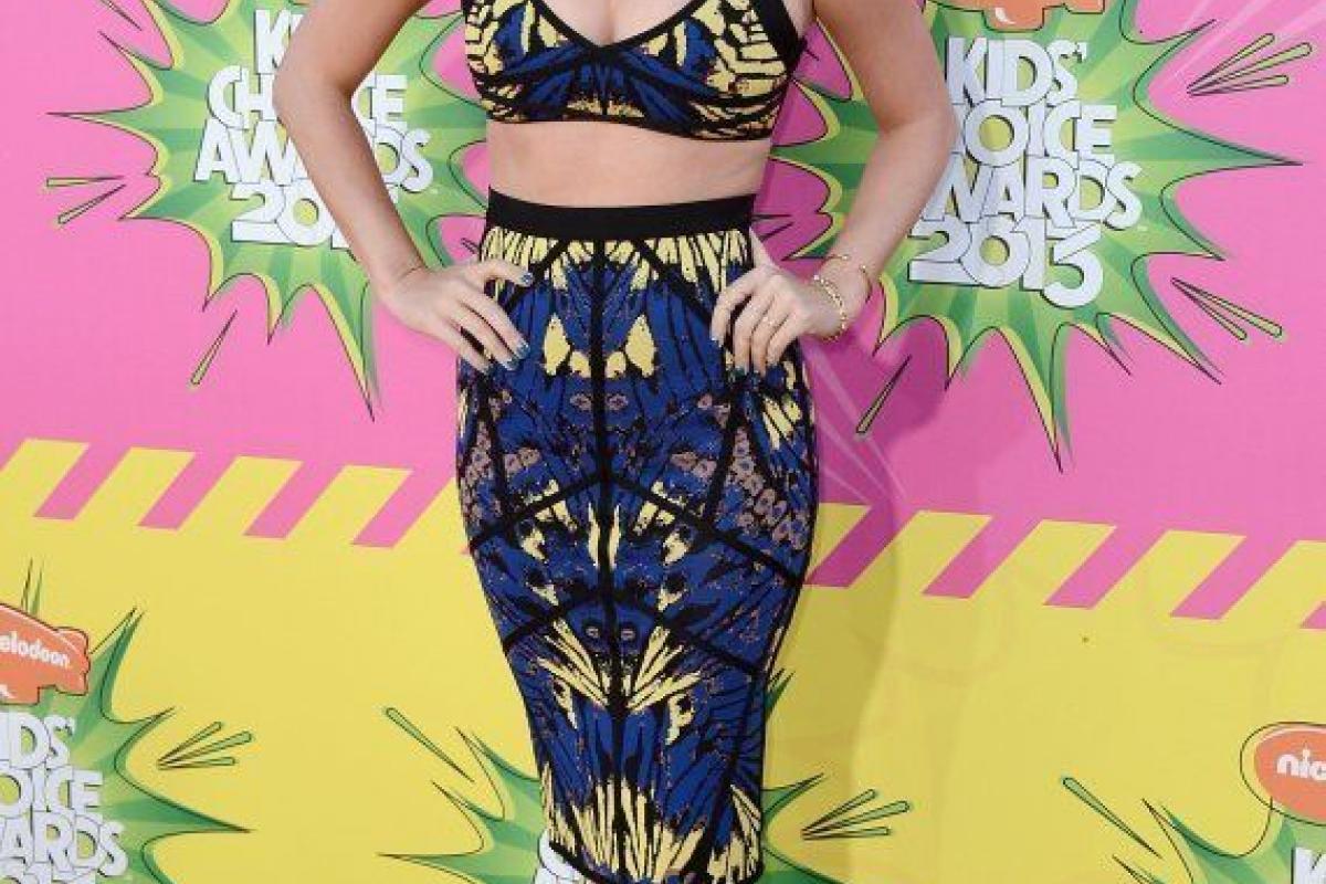 Este fin de semana lució top y falda de tubo de la firma Hervé Leger by Max Azria, en la alfombra naranja de los 26ª edición de los premios Kids Choice, en Los Angeles.