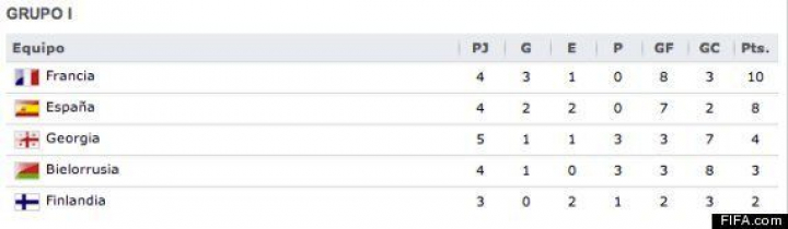 El problema es que, si España quiere clasificarse directamente para defender el cetro del fútbol mundial, ha de clasificarse como primera de grupo. De momento, La Roja es segunda con 8 puntos, dos menos que los galos.