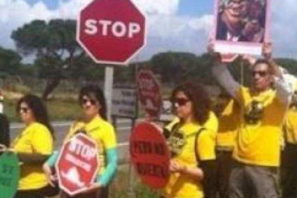 No obstante, la portavoz ha indicado que al llegar se han encontrado con una valla de seguridad cerrada y el personal de la garita les ha impedido acercarse, por lo que se han quedado a varios kilómetros de distancia, donde se han mantenido con las pancartas y coreando de igual modo sus consignas.