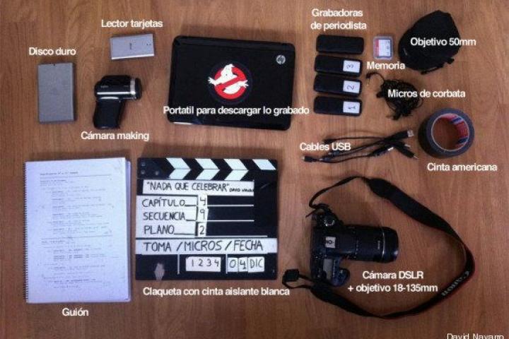 Es decir: 2.500 euros desglosados en 1.500 euros de cámara con objetivo, un objetivo prestado, grabadoras de 80 euros, una claqueta comprada en una tienda de decoración o cinta americana para pegar micros, marcar el suelo y tapar letreros. Sumados a otros 150 euros de gastos de rodaje. En total, unos 2.650 euros.