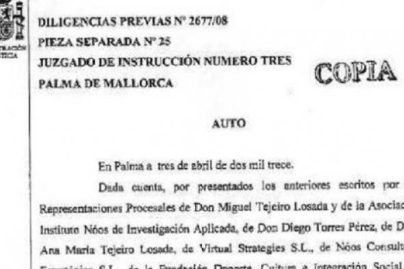 El auto del juez José Castro llamando a declarar a la segunda hija de los reyes de España, la infanta Cristina, por su implicación en el 'caso Nóos', será consultado en el futuro.