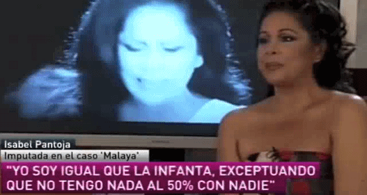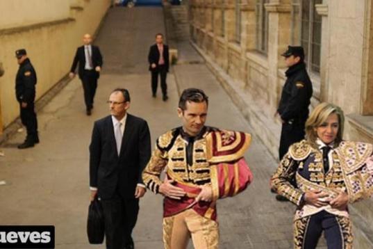 La infanta Cristina con una camisa de rayas jugando con su hermano el príncipe Felipe a través de una alambrada. La infanta Cristina, de naranja y entre rejas y el siguiente lema: "infanta naranja". La infanta Cristina e Iñaki Urdangarin vestidos de luces entrando al juzgado. O Isabel Pantoja dándole la bienvenida al mundo de las imputadas.