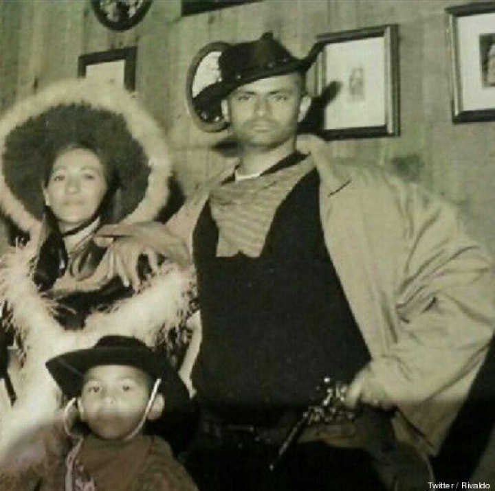 Está disfrazado de vaquero y la foto es de hace unos cuantos años, pero el entrenador del Madrid, José Mourinho, es inconfundible.