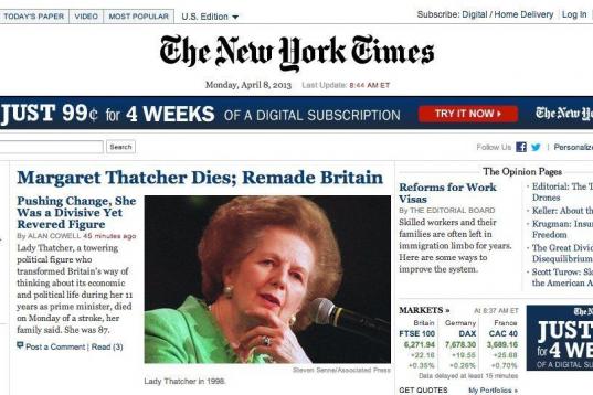 Muere Margaret Thatcher: la derecha sin contemplaciones pierde a su referente