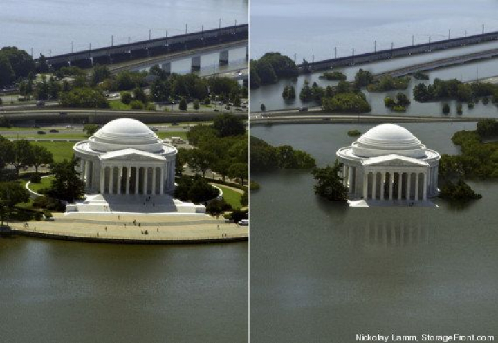 Nickolay Lamm, un investigador y artista en Pittsburg de 24 años, se ha puesto manos a la obra para imaginarlo de la forma más gráfica posible. Utilizando las predicciones de los científicos (que prevén un aumento de 25 pies, unos 7,6 metros, dentro de varios cientos de años) ha creado varias ilustraciones que muestran como serían algunos de los puntos más turísticos de Estados Unidos en ese escenario futuro.